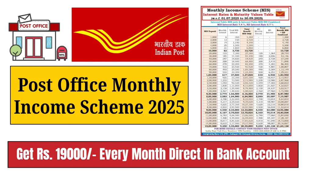 - Post Office Monthly Income Scheme 2025, Get Rs 19,000 Every Month Direct In Bank Account